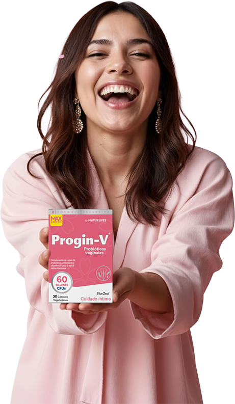 Progin-V®es un probiótico de última generación, desarrollado con una fórmula exclusiva que combina cepas liofilizadas de probióticos y prebióticos clínicamente estudiados, complementados con vitamina B2 y extractos botánicos de alta pureza, para un enfoque integral en la salud íntima de la mujer. Contiene 14 cepas probióticas clínicamente respaldadas: